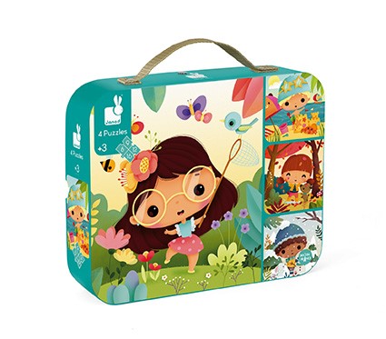4 puzles evolutivos de cartón de 6, 9, 12 y 16 piezas con la temática de las 4 estaciones.