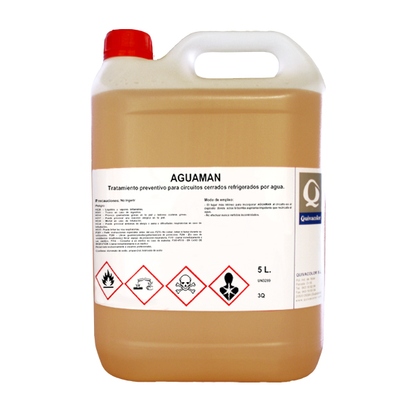 Una vez desincrustado el sistema, o si la instalación es nueva, añádanse 4 litros de AGUAMAN por cada 1.000 de agua, en recirculación.