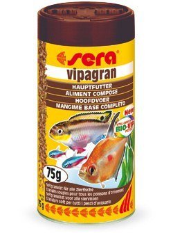 El novedoso alimento granulado SERA vipagran® es especialmente ligero, de fácil digestión y flota sobre el agua. Incluso los peces de acuario más exigentes lo comen con mucho gusto por su consistencia blanda y a la vez compacta.Esta dieta completa y equilibrada no se hincha en el estómago de los peces y no sobrecarga el organismo.