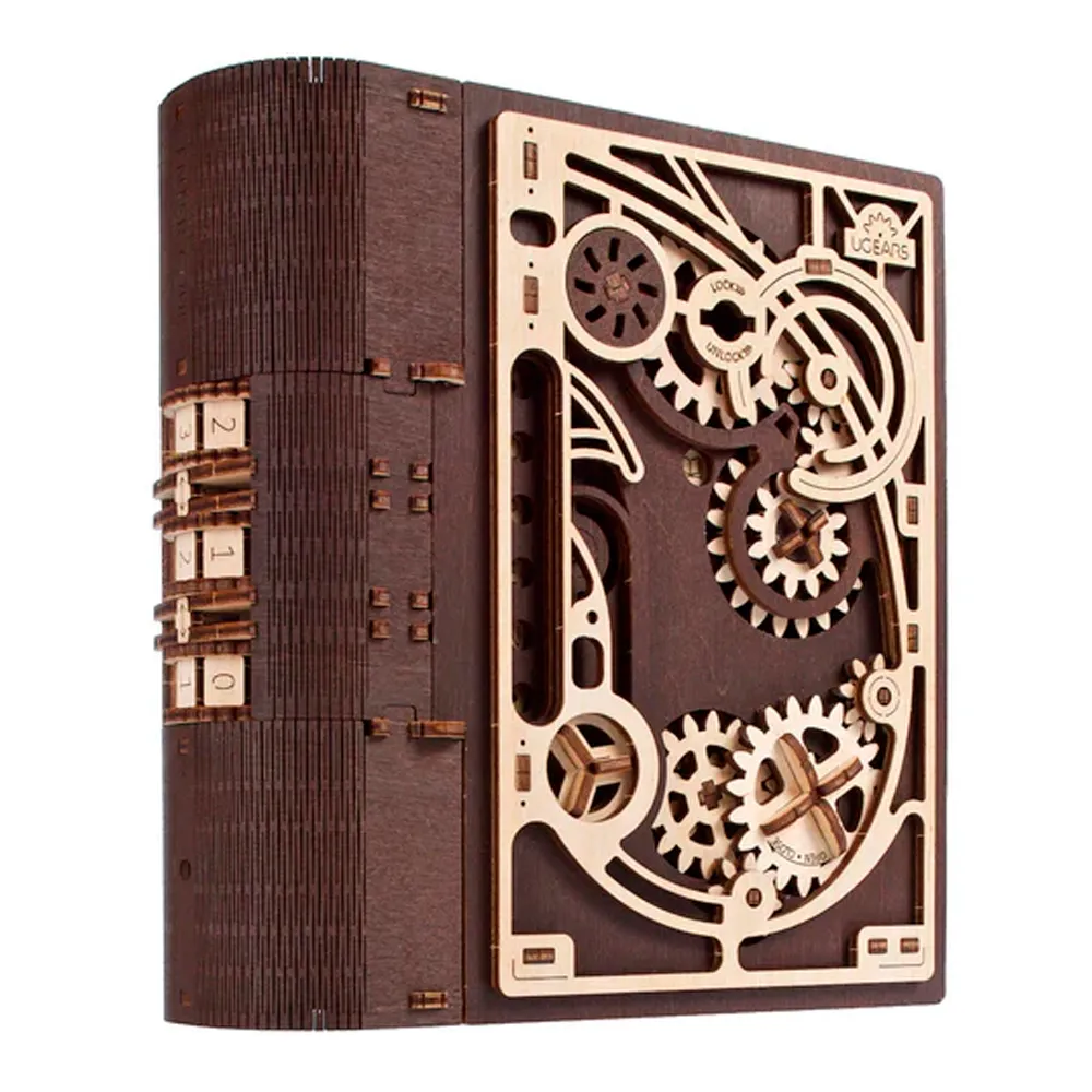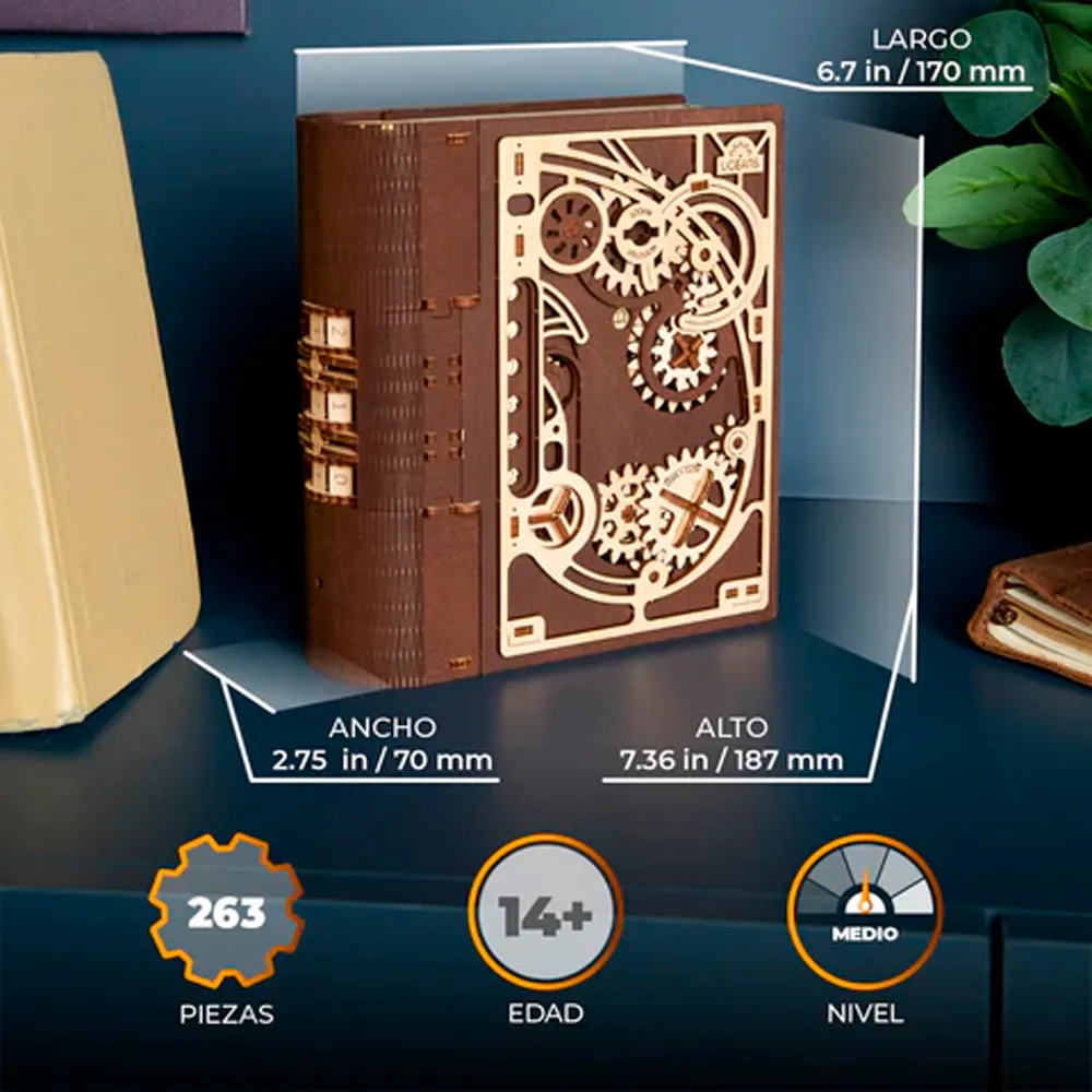 Como todos los puzzles 3D de madera para adultos y niños de Ugears, también la maqueta mecánica Libro de Secretos se monta sin pegamento ni herramientas adicionales. Simplemente tendrá que encajar las piezas siguiendo las instrucciones paso-a-paso con ilustraciones que se presentan en 11 idiomas: inglés, ucraniano, alemán, español, francés, italiano, portugués, polaco, japonés, chino y coreano. Todo lo que necesita para el montaje está incluido en el kit, también papel de lija para eliminar rebabas de las piezas de madera, así como una pieza de cera para lubricar las partes móviles.