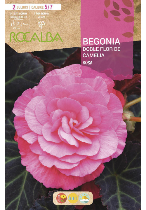 Bulbos de Begonia doble rosa (3 unidades) Calibre 5/7. Plantación: Diciembre-Abril. Floración: Junio-Septiembre. Utilidad: Jardín, maceta, flor cortada.