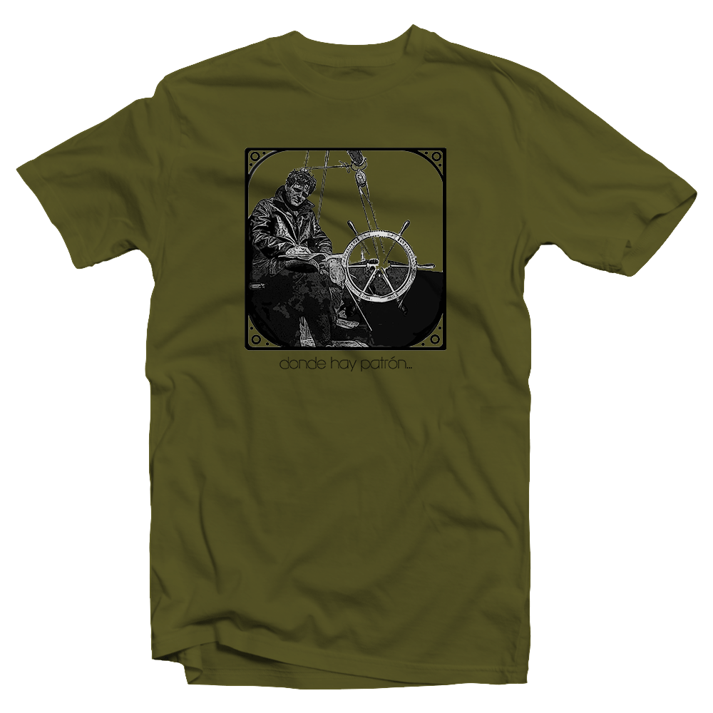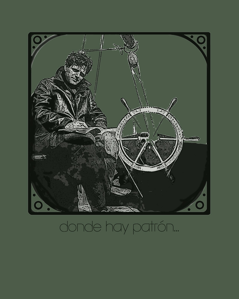 La camiseta marinera «Donde hay patrón…» es un homenaje al famoso aventurero, marino y escritor americano Jack London. Jack London es autor de obras famosas como «El lobo de mar», «Colmillo Blanco» o «La llamada de la selva». Se inició como escritor a los diecisiete años tras ganar un concurso periodístico describiendo un tifón que fue una experiencia personal vivida como marinero a bordo del «Sophie Sutherland».