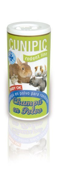 Champú en polvo para conejos, cobayas, hamsters y ardillas, también indicado para roedores baby, ya que no es necesario mojarlos.