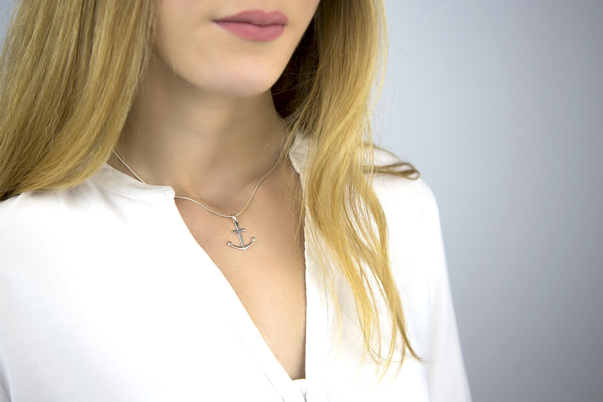 Colgante ancla plata de ley con cadena de plata de ley para mujer. Viene en caja de regalo.