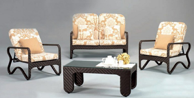 Conjunto Huitex Mesa con cristal + 2 Sillones + Sofá + Cojines HUITEX ARMENIA.