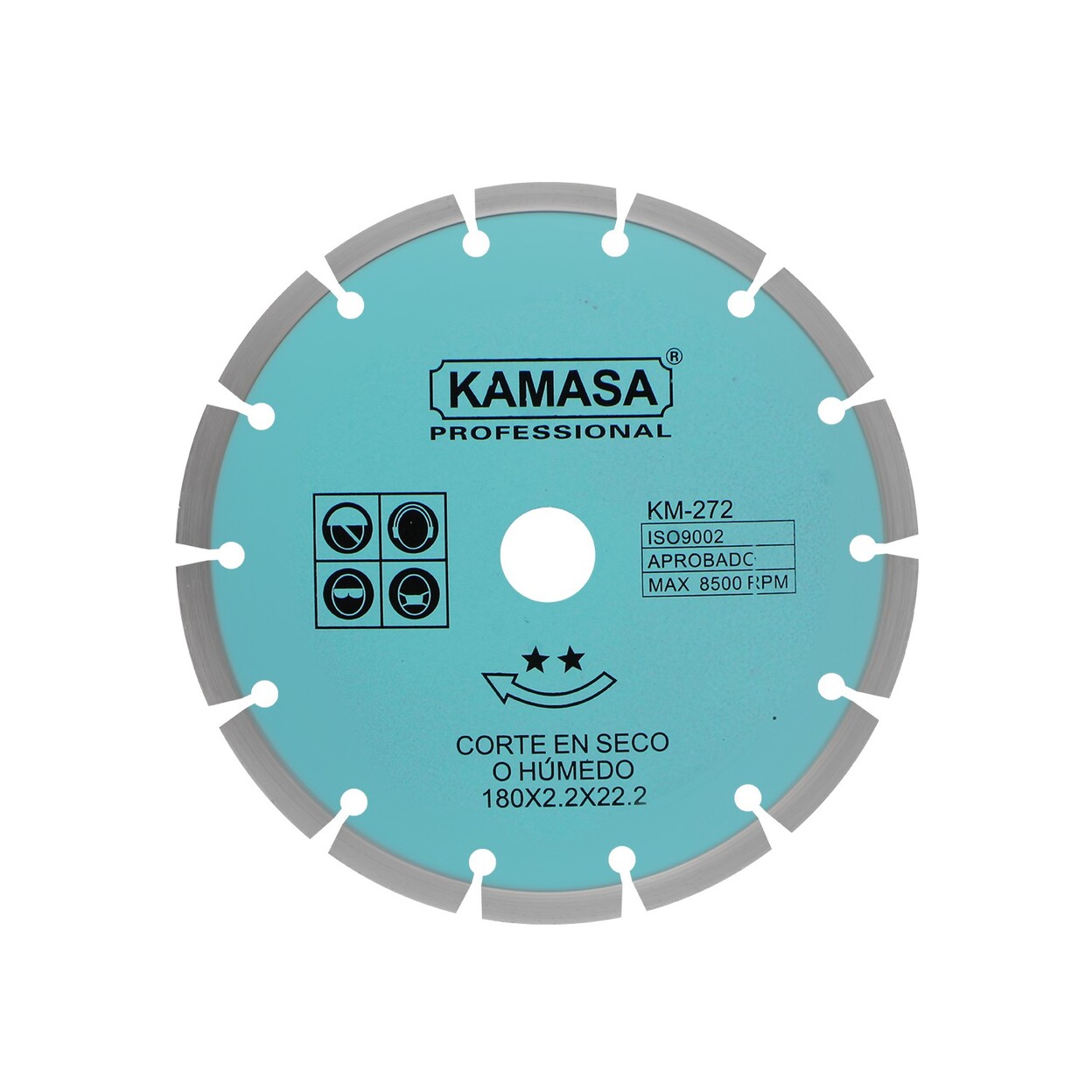 Disco diamantado segmentado de 7 pulgadas (180 mm), diseñado para cortes precisos y duraderos en materiales duros y abrasivos. Ideal para uso en corte húmedo y seco, ofrece versatilidad y alto rendimiento en aplicaciones profesionales y domésticas.