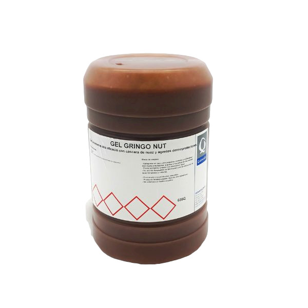 Gel lavamanos alta eficacia con cáscara de nuez y agentes dermoprotectores.