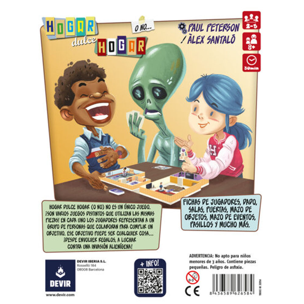 Hogar, Dulce Hogar… O No es un juego de tablero de 2 a 5 jugadores en el que los jugadores tendréis que colaborar juntos para conseguir el objetivo de cada una de las cinco distintas misiones que incluye el juego. En estos escenarios, tendréis que montar el tablero utilizando las cajas que formarán las habitaciones de vuestro hogar, y después recoger objetos y llevarlos a donde indiquen vuestras misiones. Juego de gran diversión y que disfrutaréis en familia y con amigos.