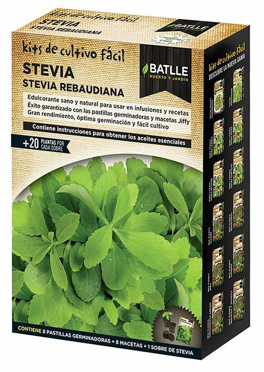 El Kit Stevia BATLLE es una forma muy fácil de cultivar plantas de Stevia, a partir de las mejores semillas, macetas de turba prensada y pastillas de sustrato compactado.