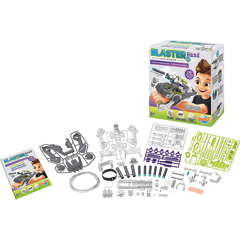 – Montaje fácil: ensamble las piezas y construya un blaster manual alimentado por energía neumática. Coloca tu mano dentro del blaster y bombea para disparar los dardos.