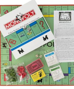 - Contenido: Un tablero duro, grueso, instrucciones, 32 Casas, 12 hoteles de plástico, un par de dados, 6 fichas de metal (bota, tren, sombrero, perro, carro, alpaca
