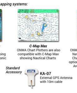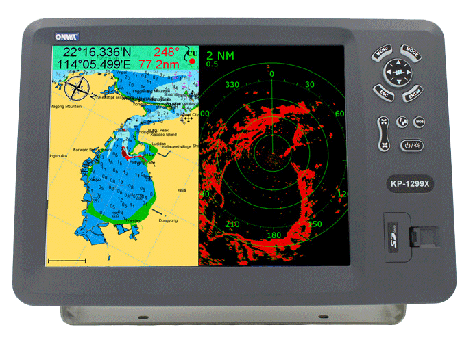 ONWA KP-1299 X es un equipo multifunción con funciones y pantallas de GPS, Plotter, radar (necesita la antena de radar opcional), sonda y AIS clase B ya incluida.