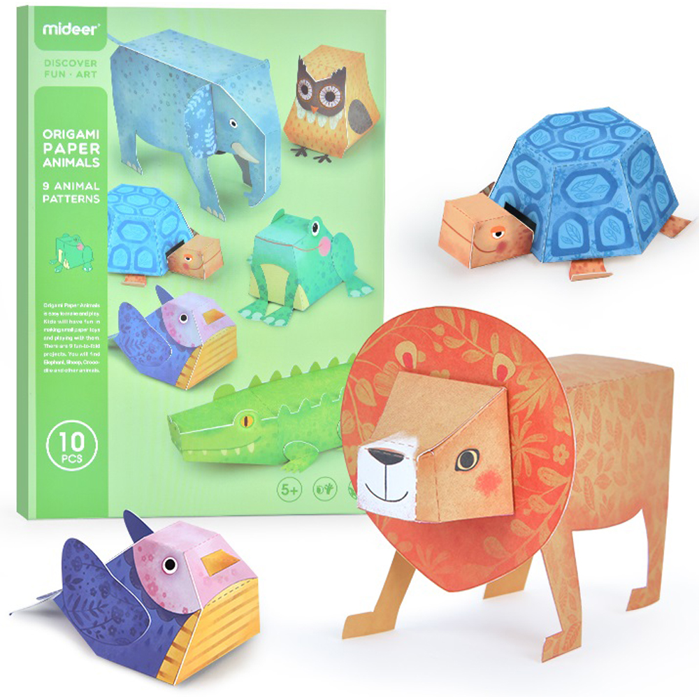 Este origami viene con 10 animales fáciles de recortar y plegar, como elefantes, leones, ovejas y muchos otros.