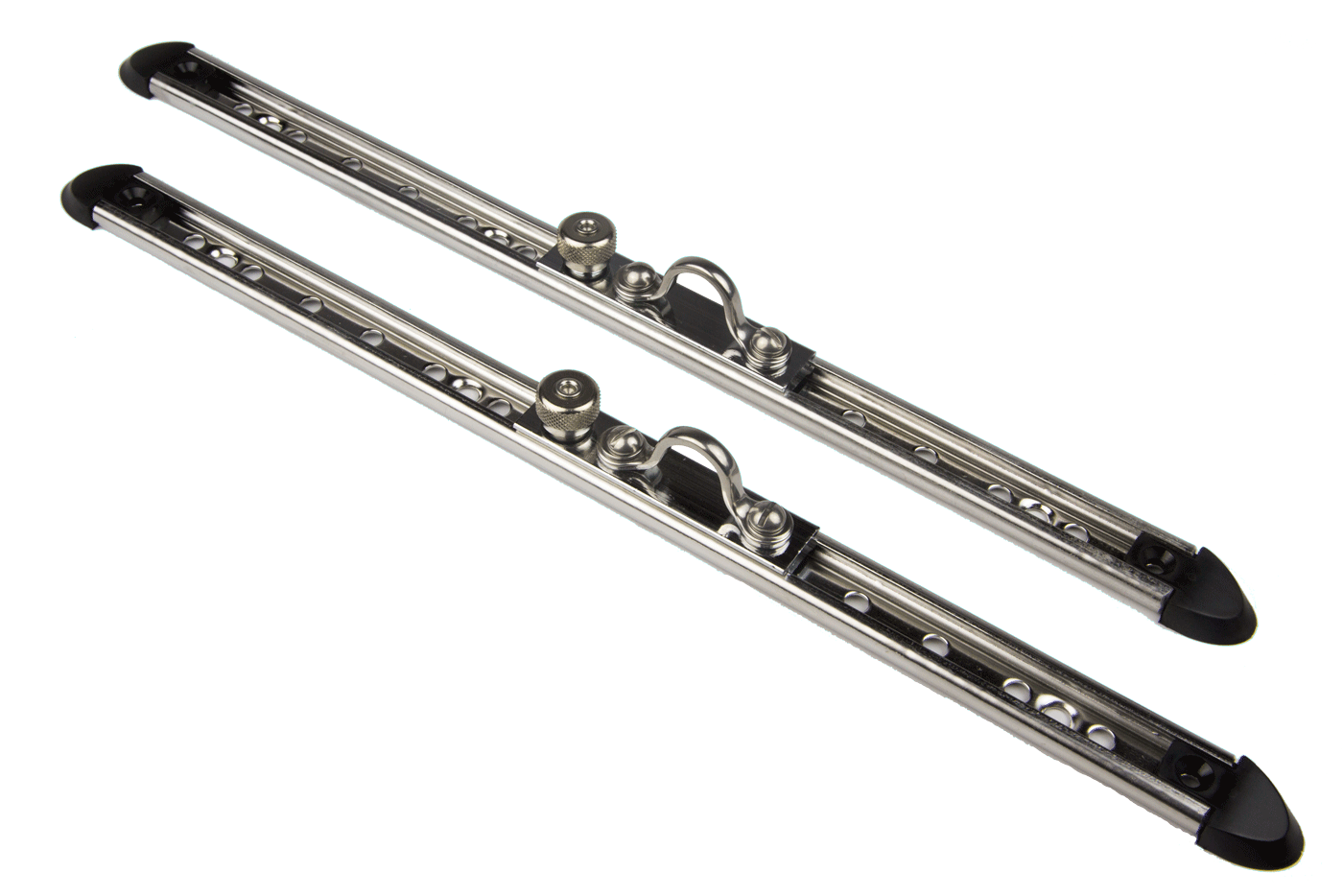 Consistente en 2 carriles de 30 cm de acero inoxidable Ronsta RC8190-0.3 + 2 carros escoteros automáticos Ronstan RC81940 + 2 topes de carril Ronstan RC81980.