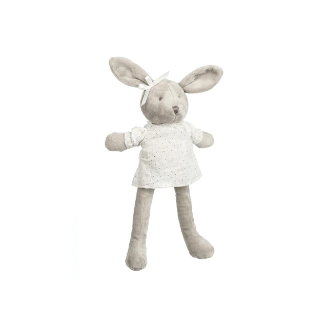 Peluche Conejito con vestido (30 cm.) Topos, en gris.