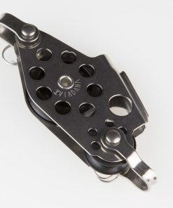 Polea violín con mordaza 38 mm y arraigo para cabos de 8 mm