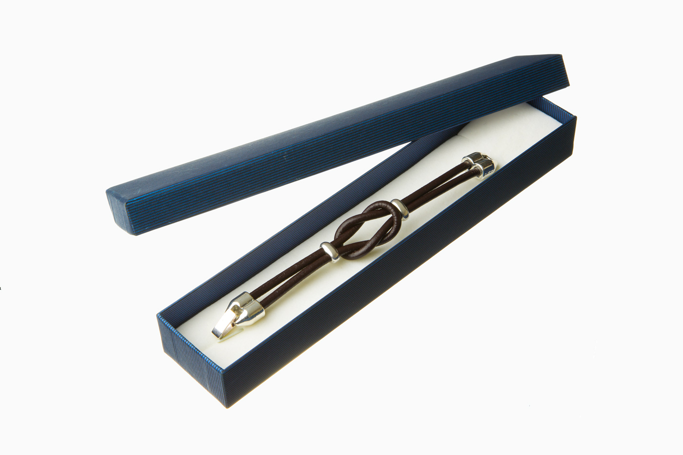 Pulsera artesanal hecha con cuero y piezas de zamak