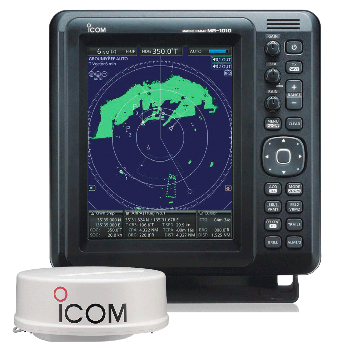 El Radar ICOM MR-1010R puede marcar puntos con iconos y transferir los datos de posición con sentencias TLL NMEA a otros dispositivos NMEA 0183 como un plotter externo.