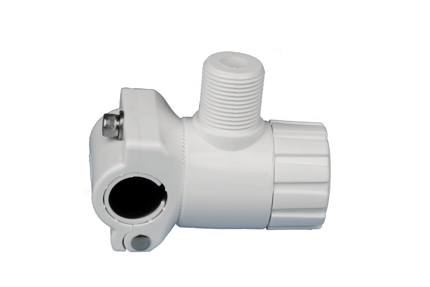 Soporte antena fabricado en nylon, tres ejes con rosca para montaje en barandilla.
