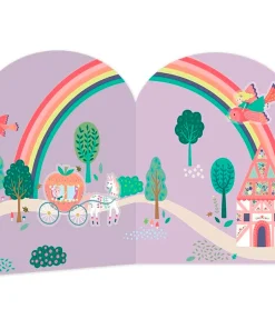 Stick & Play Cuentos de Hadas es muy divertido y educativo al mismo tiempo. Con más de 50 stickers reutilizables con formas divertidas que incluyen princesas, dragones voladores, pájaros, ciervos, caballos y carruajes y mucho más. Hay 2 escenas desplegables para crear e inventar historias usando los stickers reposicionables.