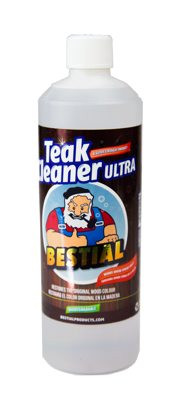 Limpiador de teca y de maderas oleosas. Límpia en un tiempo record todo tipo de suciedades y elimina la madera muerta, el verdín y el moho de las cubiertas de teca envejecidas con el tiempo. Después de su uso, recomendamos aplicar el TEAK RENOVATOR para dejar la madera como nueva.