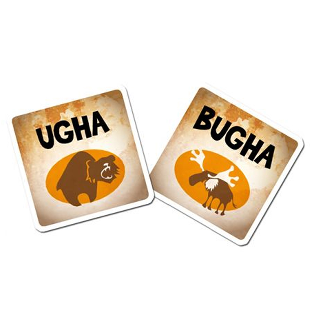 ¡Tu prehistórica tribu se ha reunido para elegir un nuevo jefe! En esta asamblea, hombres y mujeres lucharán por convertirse en el nuevo líder del clan, en una competición sagrada llamada ¡UGHA-BUGHA! Tu objetivo: memorizar los sonidos o acciones que se muestran en las cartas, que poco a poco irán formando una pila, y si te llega el turno, reproducir la secuencia en el orden correcto. Así que saca pecho, entona tu mejor voz cavernícola y prepárate para repetir una serie de gruñidos que podrán ir acompañados de aplausos, golpes sobre la mesa, o cualquier otra loca acción que te indiquen las cartas… Ugha Bugha, Un juego que sacará al cavernícola que hay en ti…